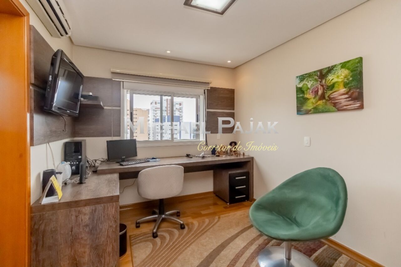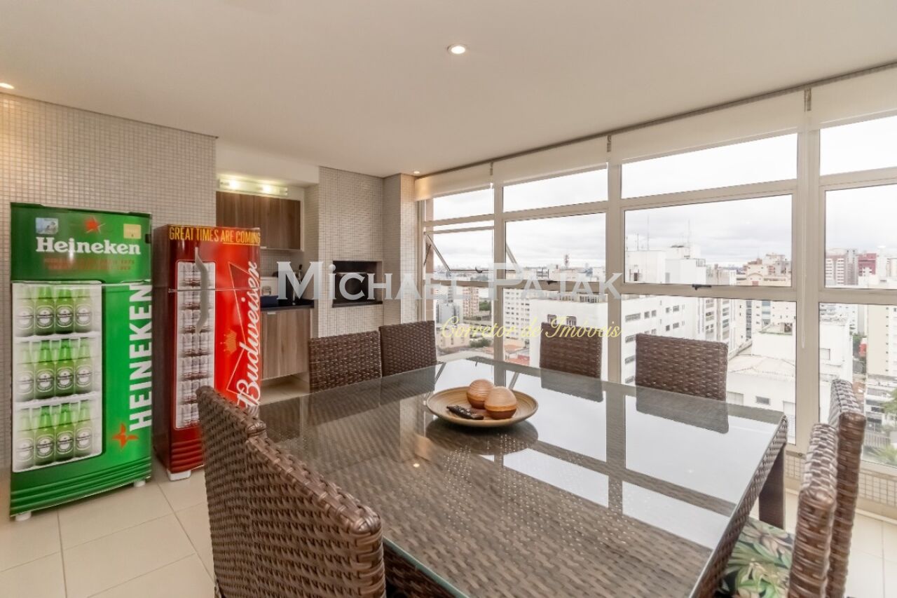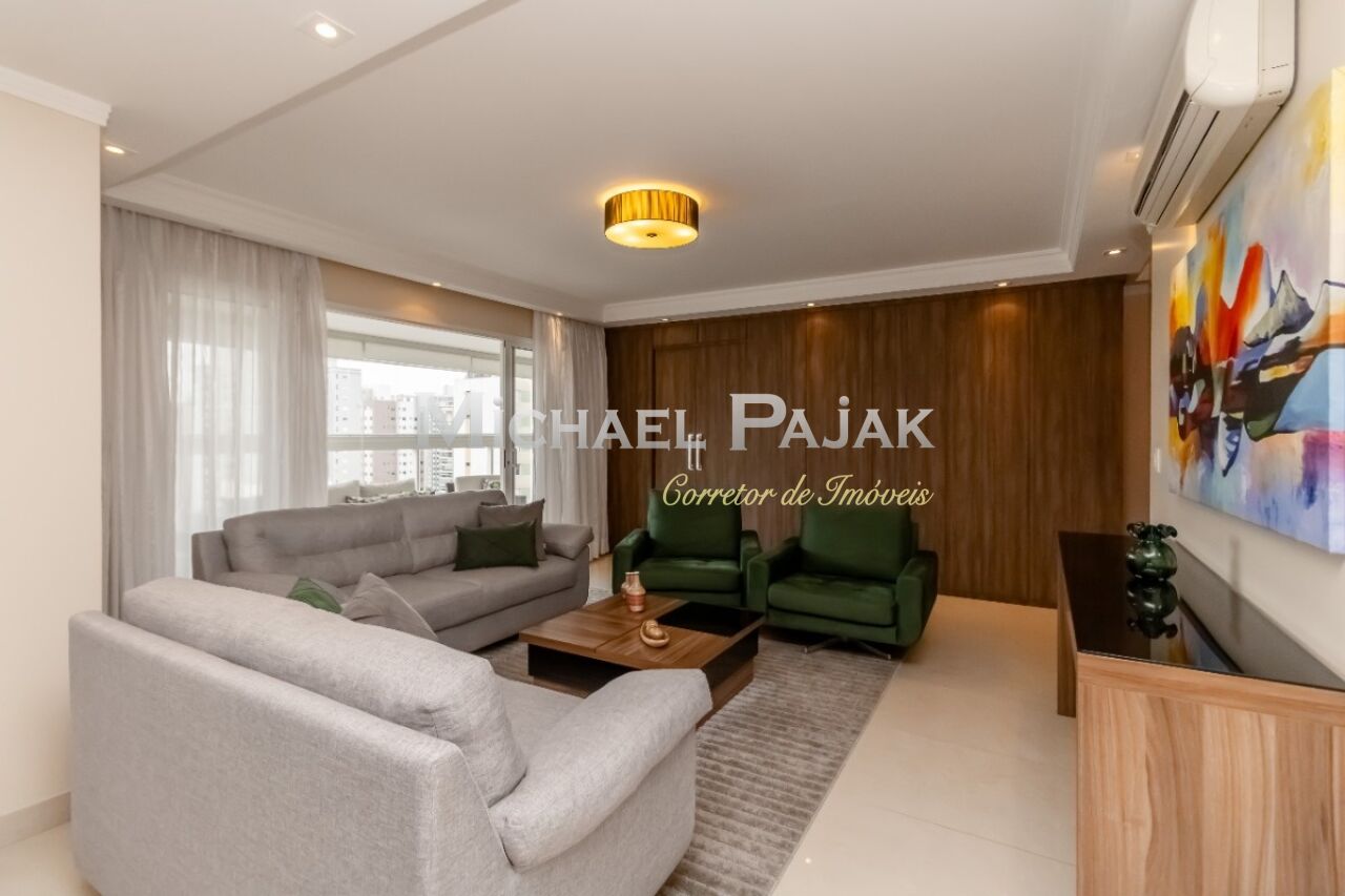 A sala de jantar integrada ao terraço e a varanda gourmet tornam o ambiente perfeito para receber convidados ou desfrutar de momentos de lazer. O apartamento é totalmente mobiliado e ainda conta com sala de TV, cozinha grande, despensa e uma área de serviço com banheiro, 4 vagas + depósito.