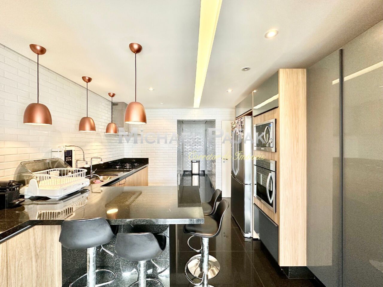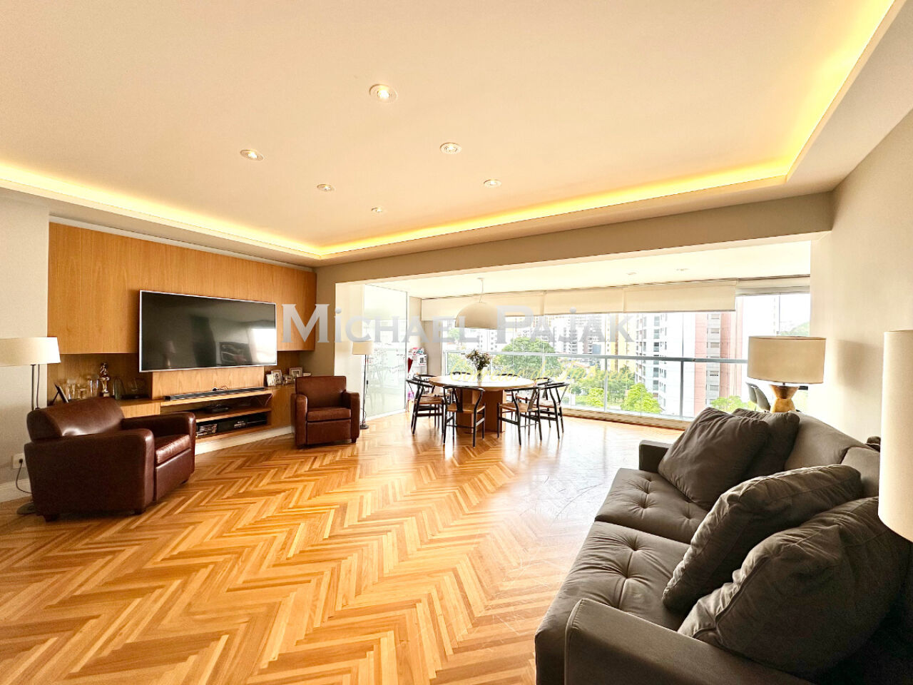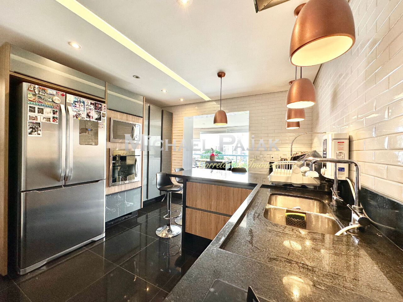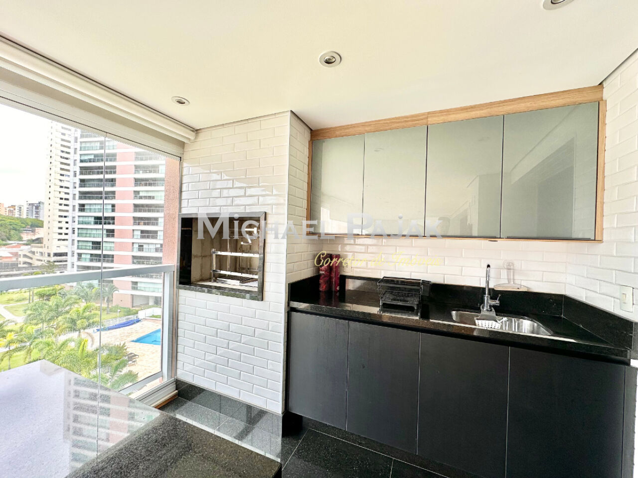 A sala ampla, integrada à varanda gourmet envidraçada, cria um espaço perfeito para receber convidados com charme e conforto. A cozinha é equipada com o que há de melhor, contando com armários planejados da renomada marca Kitchens, unindo design e funcionalidade.