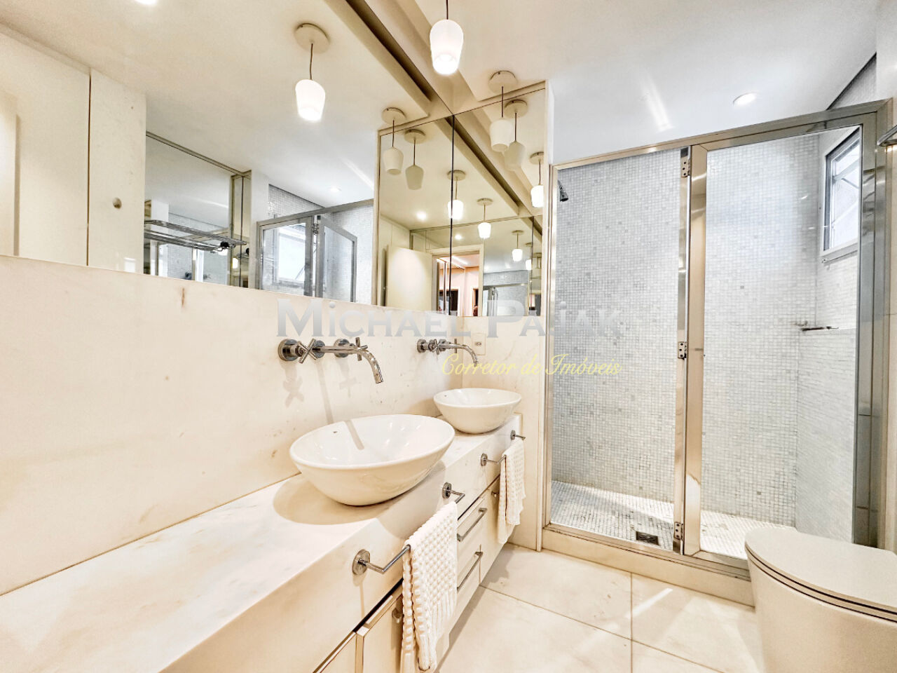 O apartamento dispõe ainda de ampla área de serviço, bem ventilada e iluminada, além de quarto e banheiro de serviço. Um lavabo chiquérrimo atende às visitas com elegância. Completam o imóvel depósito privativo e 3 vagas de garagem.