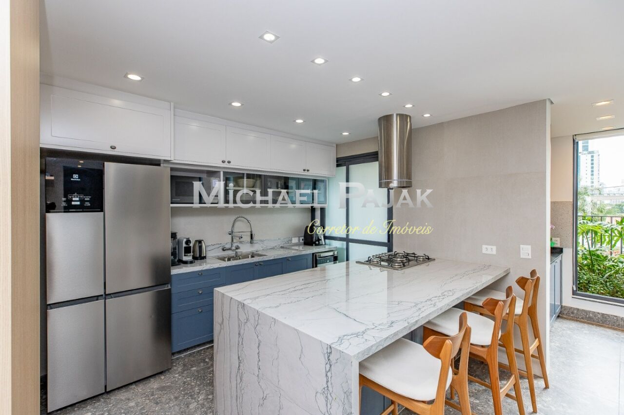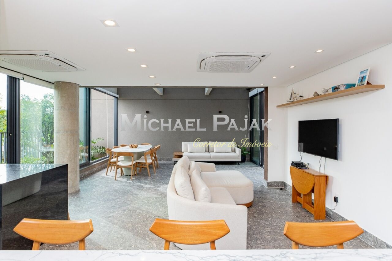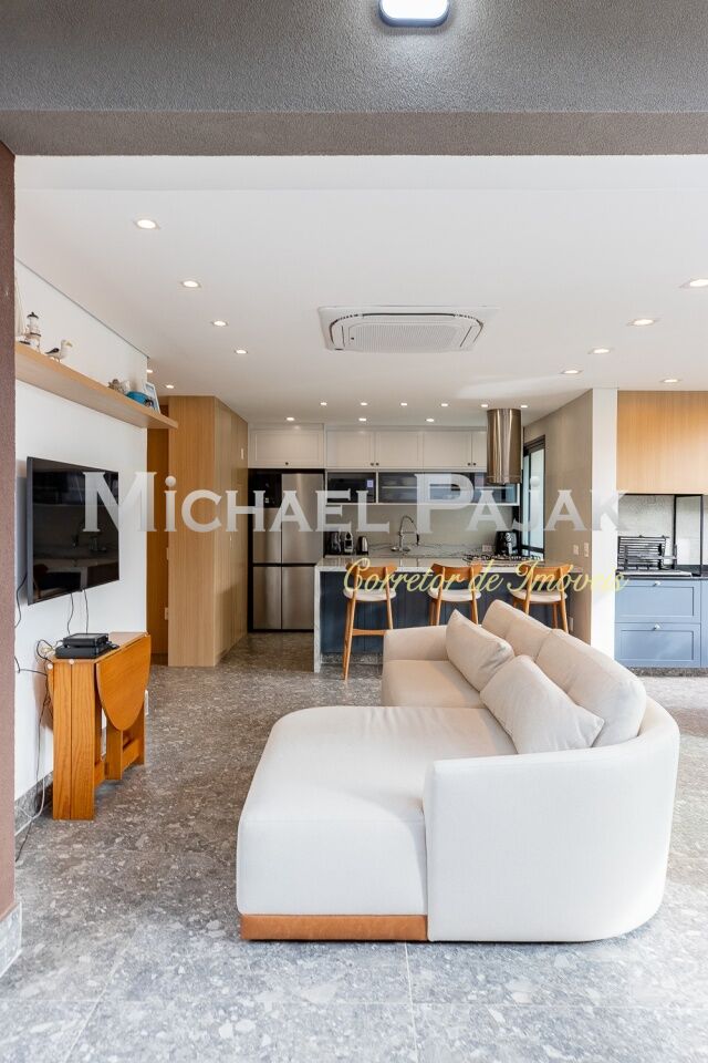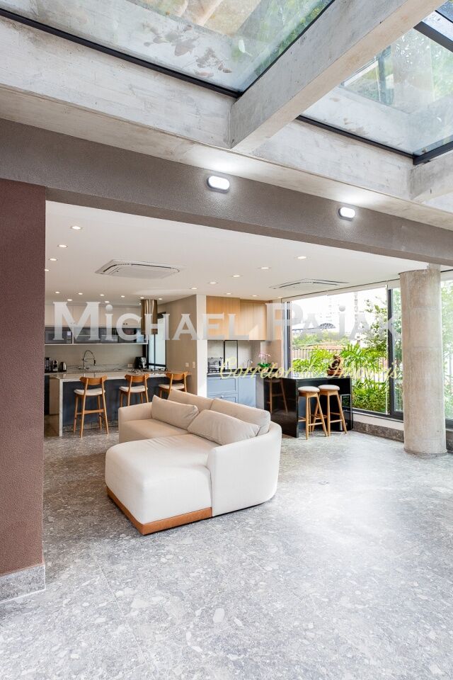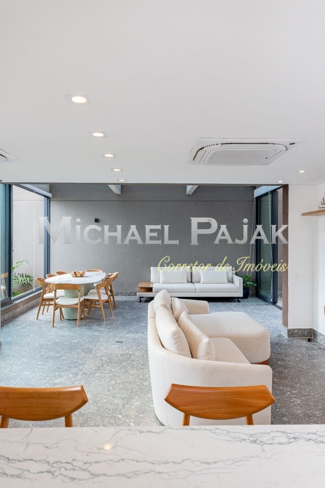 O living é um dos grandes destaques deste imóvel, com uma sala de jantar e estar amplas e climatizadas, que oferecem um ambiente sofisticado e acolhedor. O piso em porcelanato Portobello Pietra confere ainda mais elegância aos espaços, que são iluminados por janelas grandes voltadas para o jardim, permitindo que a luz natural preencha os cômodos durante todo o dia. A cozinha americana é moderna e funcional, equipada com cooktop e coifa na ilha central, além de muitos armários planejados, proporcionando praticidade e organização no preparo das refeições. O imóvel ainda conta com um lavabo decorado, ideal para receber visitas com conforto., lavanderia e 2 vagas de garagem.