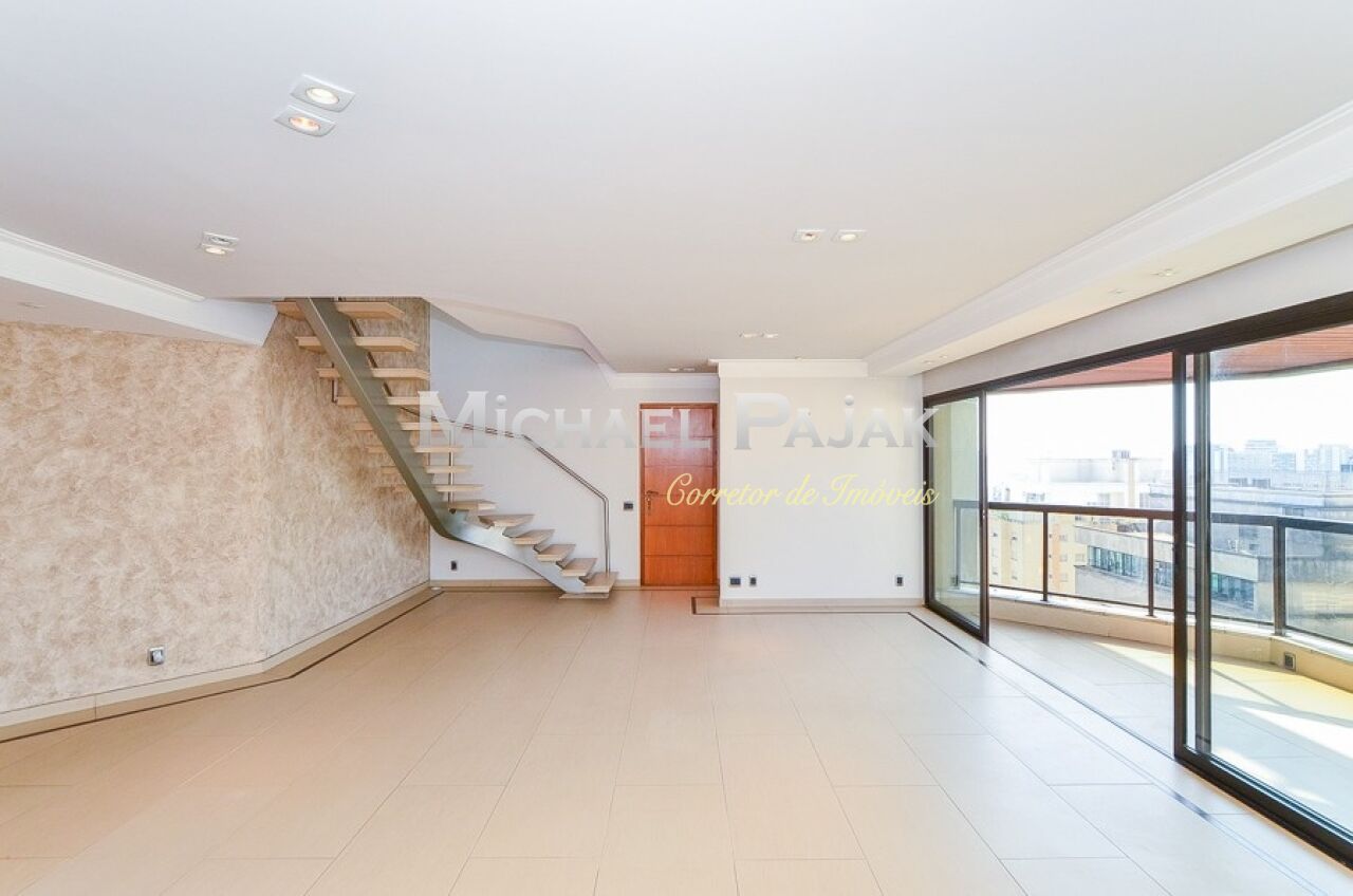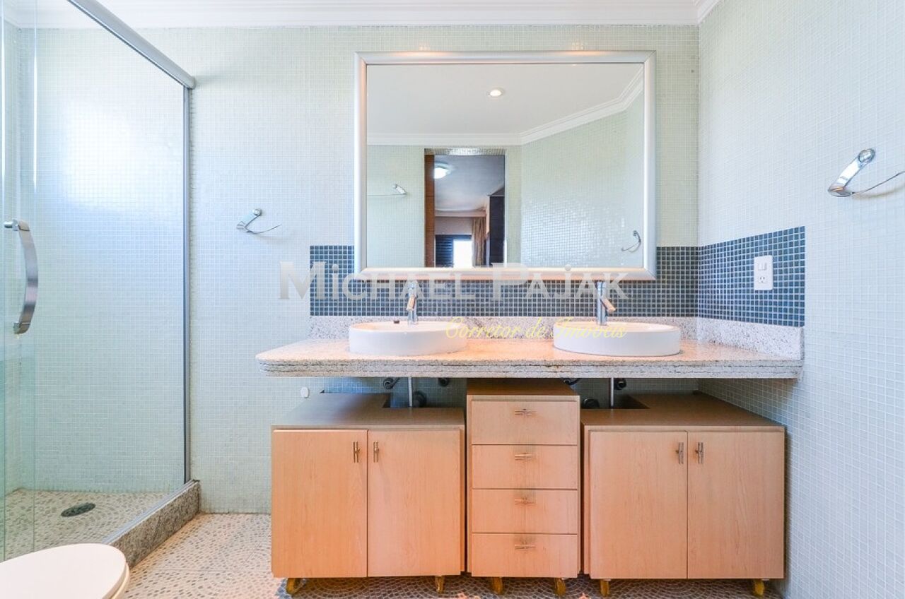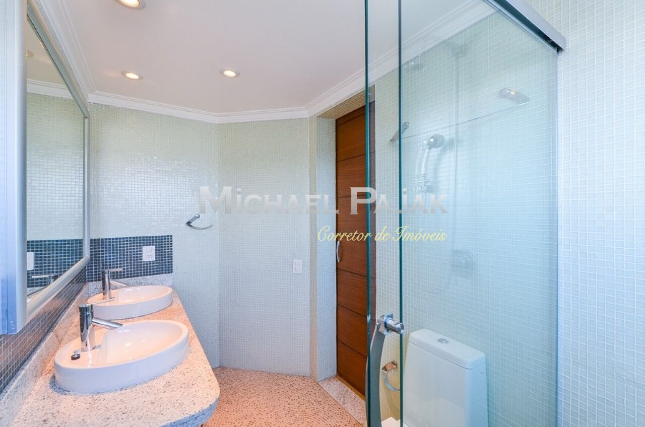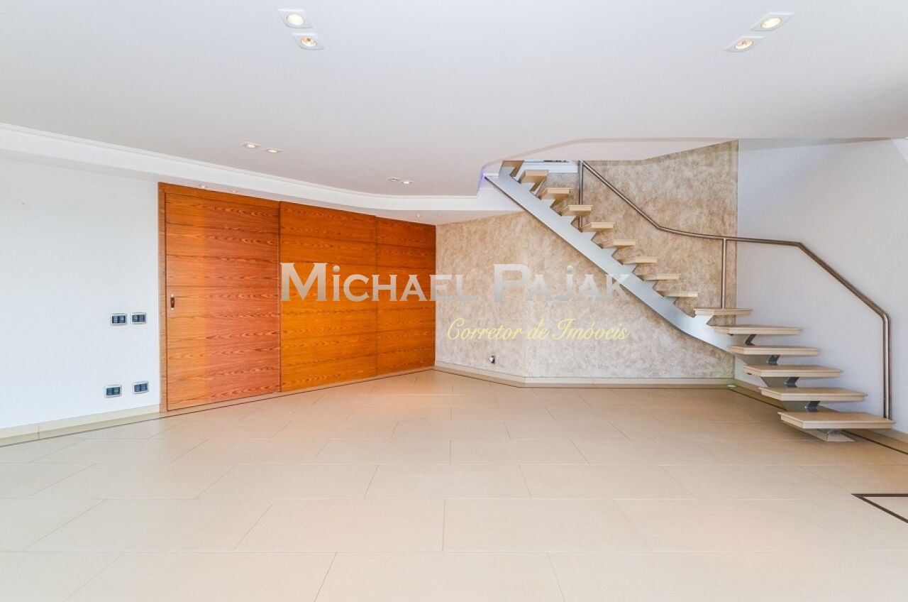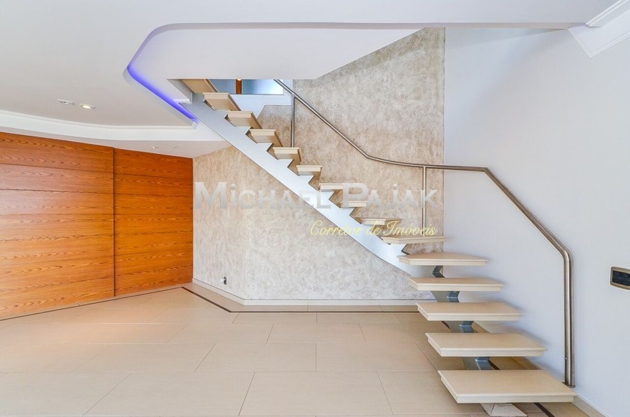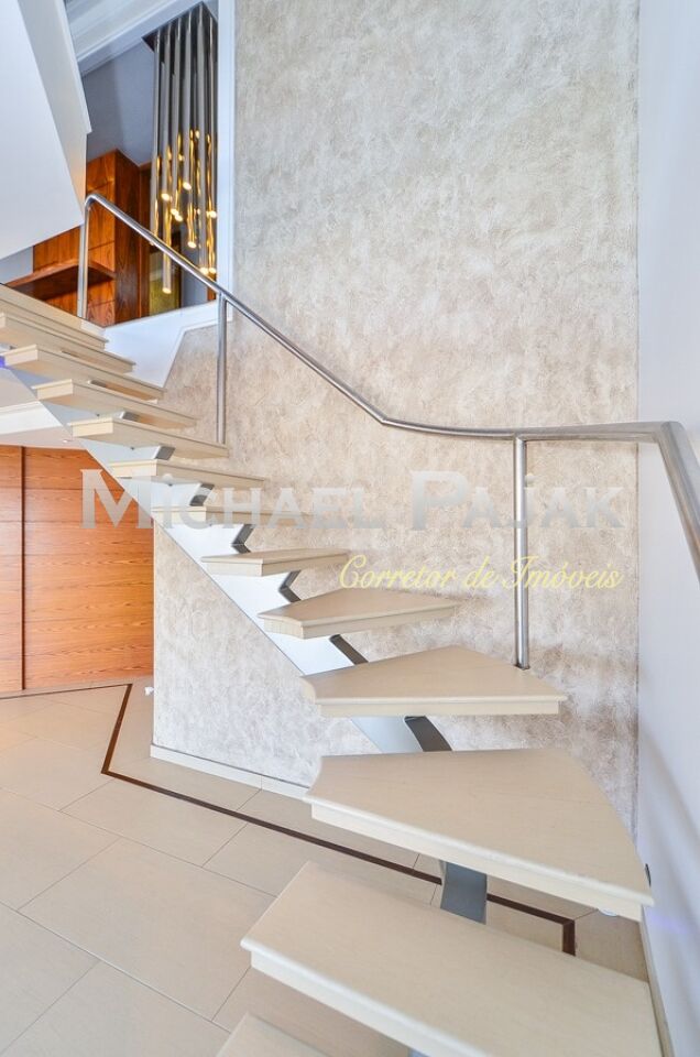 Uma sofisticada escada, projetada especialmente para o imóvel, dá acesso ao segundo andar: espaço ideal para receber com elegância amigos e parentes. A sala é bastante ampla e conta com uma linda lareira, cozinha de apoio, jardim e área gourmet coberta e completa: com churrasqueira, forno de pizza e espaçosa jacuzzi.
