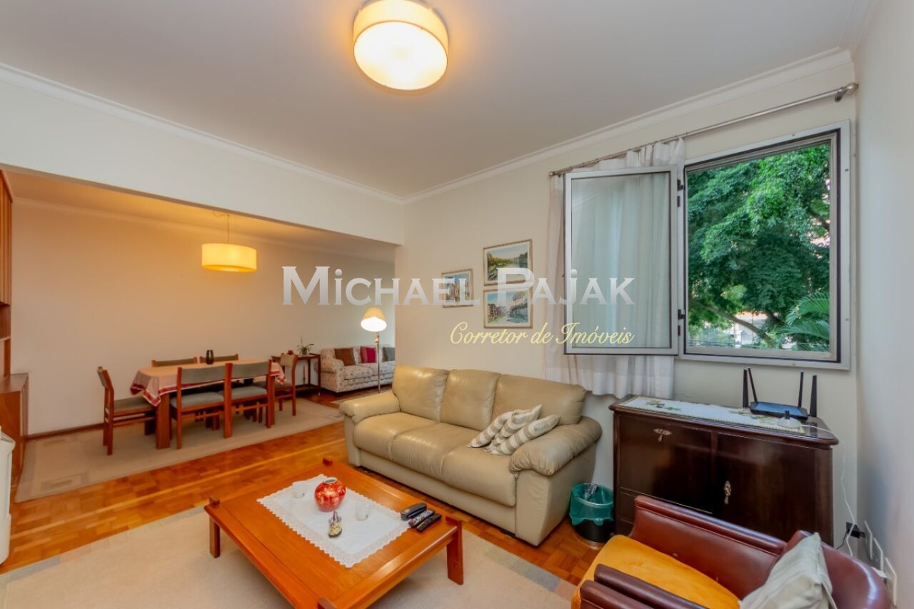 Prédio antigo, com construção robusta, pé direito alto e janelão com vista para a copa das árvores! Este apartamento com 123 metros quadrados bem distribuídos numa planta quadrada possui 3 dormitórios, 2 banheiros, ampla cozinha e área de serviço, 1 vaga fixa já determinada e dependência de colaborador e tem grande potencial para se tornar um lar dos sonhos !