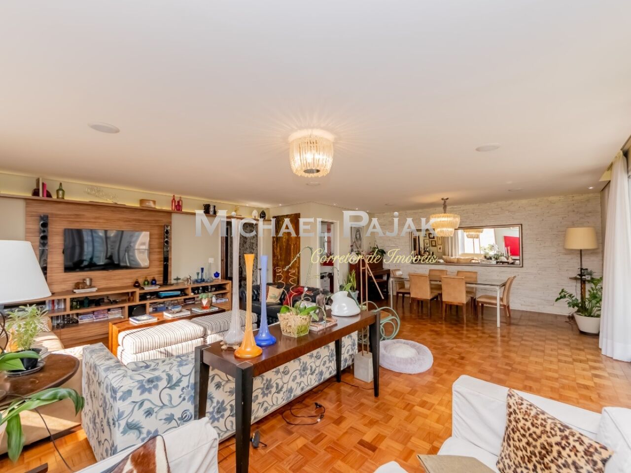 Sala ampla para três ambientes e o que era bom ficou melhor com a construção de uma varanda gourmet com sistema de exaustão para churrasqueira. O apartamento ganhou em espaço, charme e modernidade!
