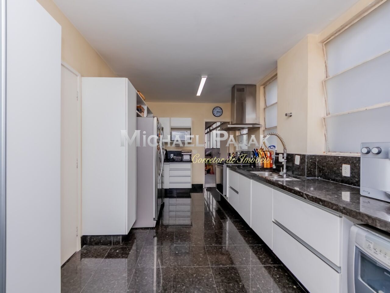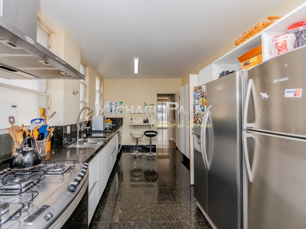 A cozinha é a alma da casa! Uma cozinha tem que ser prática, espaçosa, clara e arejada. Esta não é diferente. Tem copa, uma bancada bem grande, repleta de armários, espaço para a movimentação do dia a dia que toda cozinha precisa e grandes janelas! Prática e funcional.
