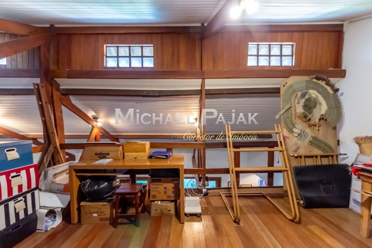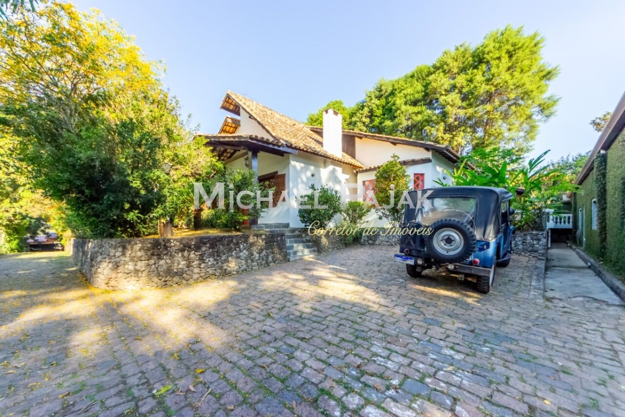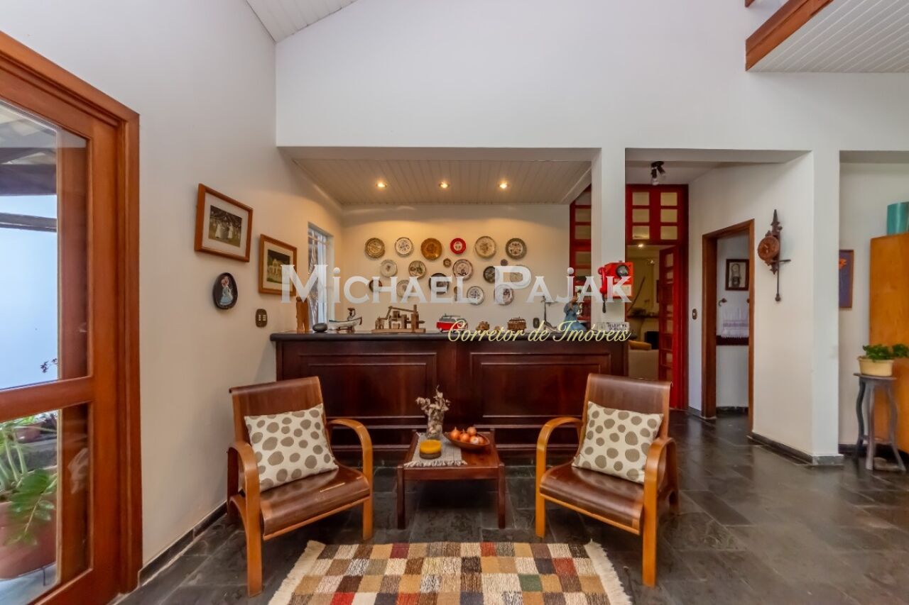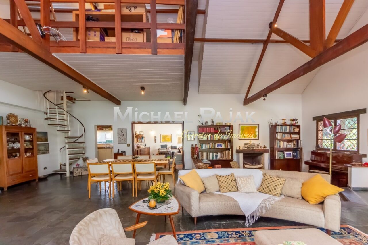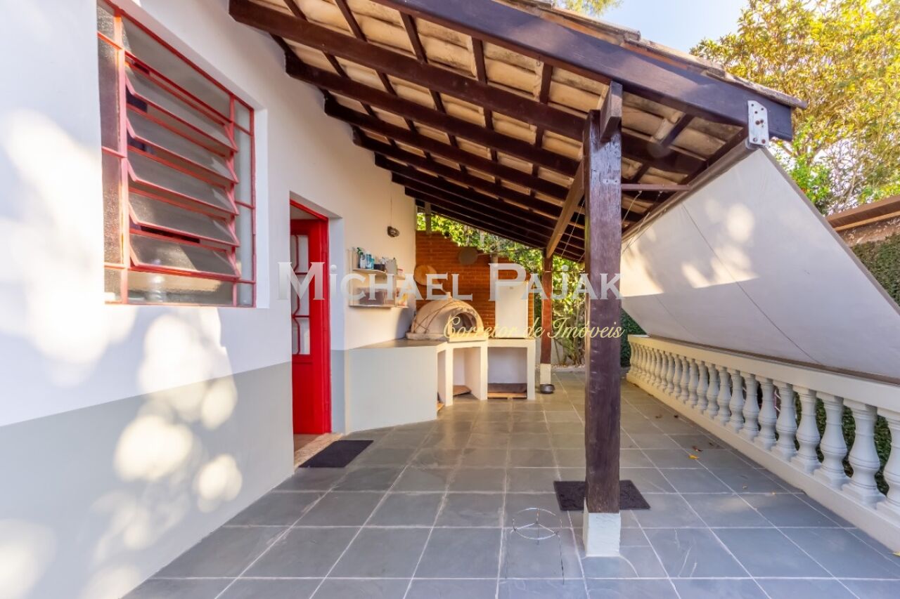 A arquitetura colonial, evidenciada pelas vigas de madeira maciça e janelas amplas, confere um charme único a esta residência. O piso em madeira e pedra adiciona uma sensação de rusticidade elegante.