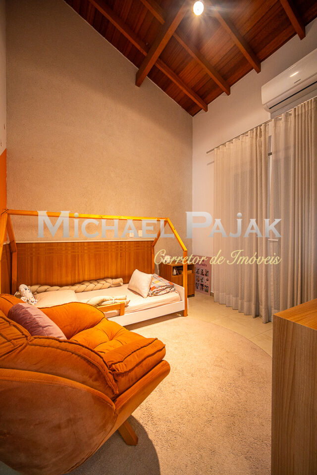 O imóvel possui 4 quartos, todos suítes amplas, sendo uma delas localizada no térreo, ideal para famílias que valorizam praticidade e acessibilidade. São 5 banheiros com acabamentos modernos e excelente iluminação natural. A sala de estar é integrada à sala de jantar e à sala de lareira, formando um amplo living com pé direito alto que proporciona sofisticação e bem-estar.