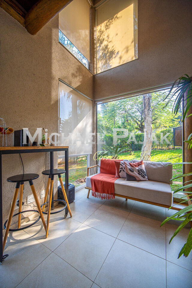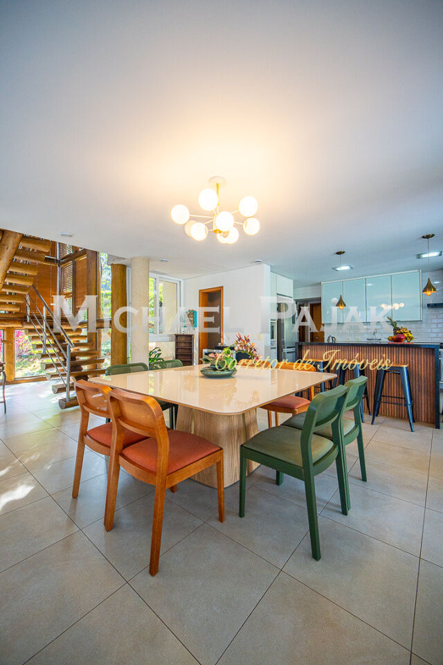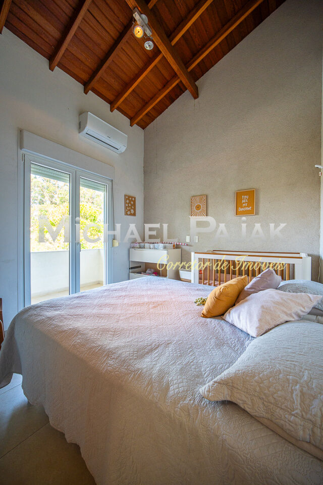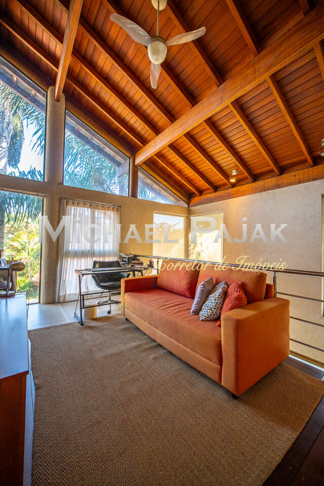 Na área externa, destaque para a piscina de borda infinita, o pomar com árvores frutíferas e o amplo quintal que oferece diversas possibilidades de lazer. A casa conta ainda com um estúdio em container climatizado com dois aparelhos de ar-condicionado, ideal para home office, academia ou ateliê.