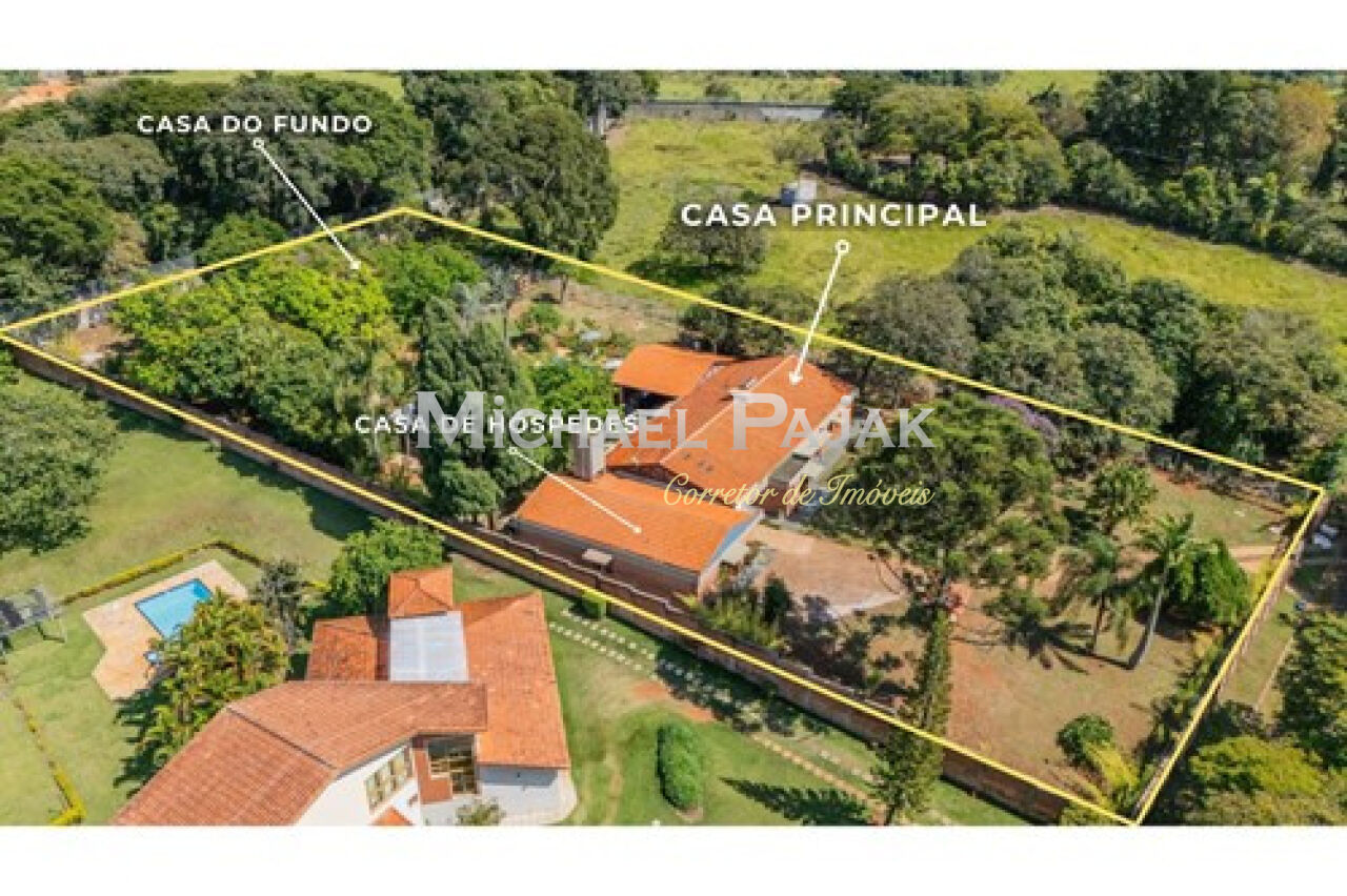 Esta casa tem 7 quartos amplos, com 3 suítes espalhadas por 4.393,29m² de espaço verde. São 724 m² de área construída distribuídos em 3 casas, principal, hóspedes e apartamento. Todas igualmente lindas, planejadas e confortáveis.