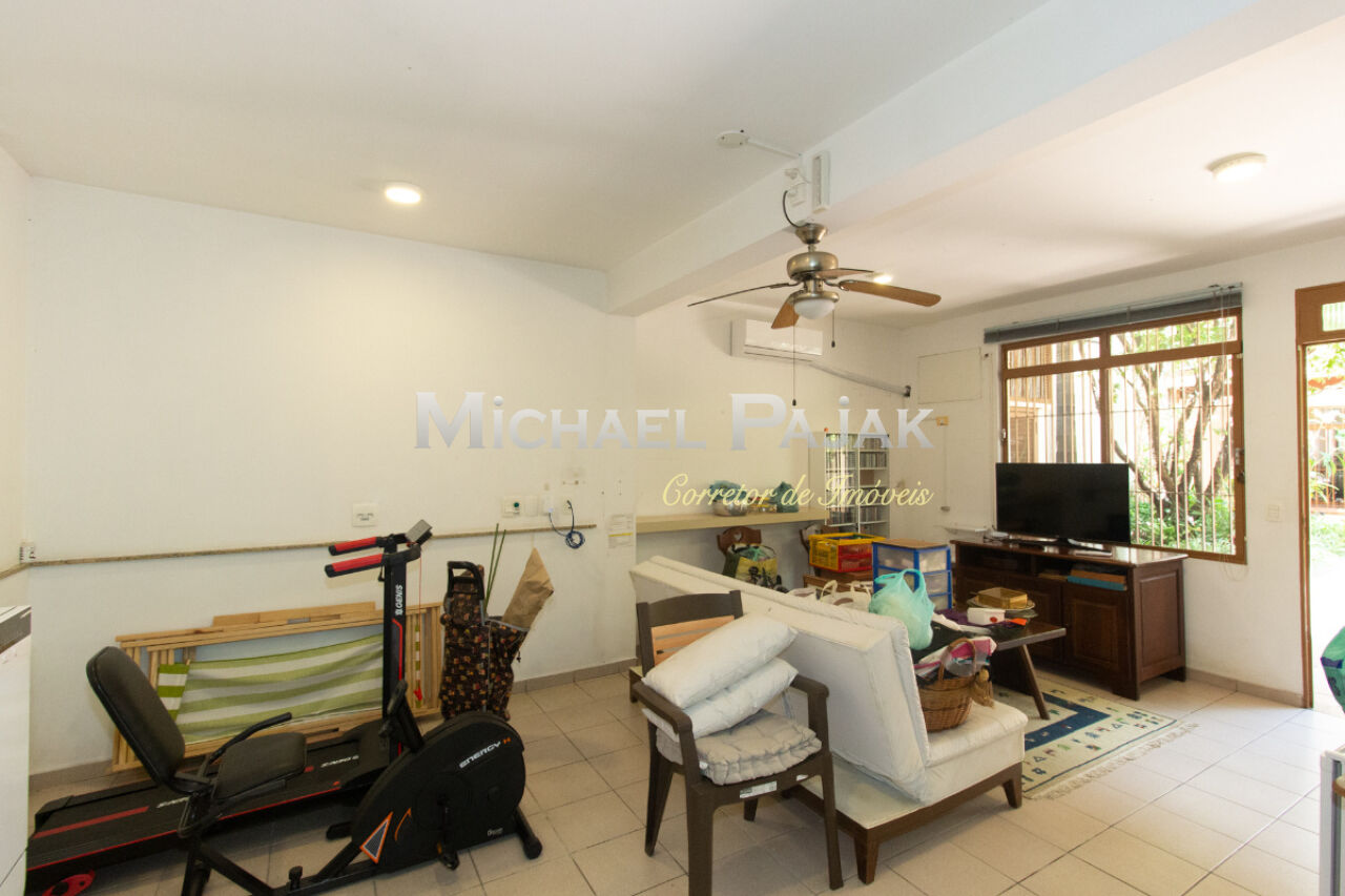 Térreo: Living espaçoso para três ambientes, com vista para o jardim de inverno e quintal arborizado. Copa equipada, dois lavabos e uma suíte (atualmente escritório) com vista para o jardim.