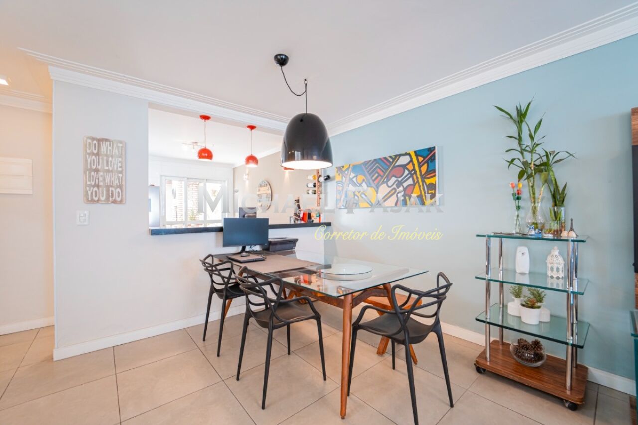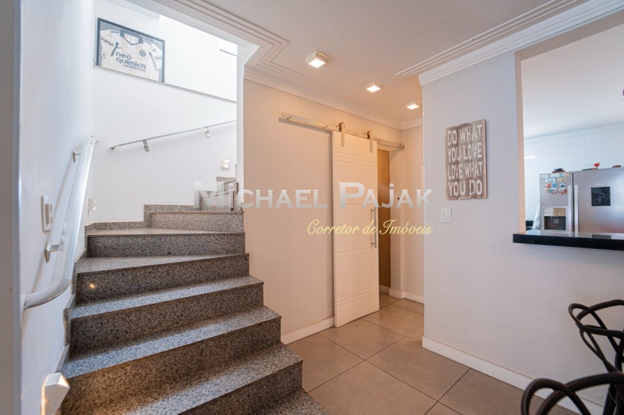 Ao entrar, você encontra um amplo living com dois ambientes, integrado à cozinha e com um lavabo que complementa o espaço. A área privativa conta com três dormitórios, incluindo uma suíte, todos com armários embutidos. Nos fundos, a área externa é um convite ao lazer, com churrasqueira, lavanderia, quarto e banheiro adicionais. No andar superior, um amplo terraço oferece um ambiente versátil e acolhedor, perfeito para diversas atividades e para ser personalizado conforme seu estilo de vida.