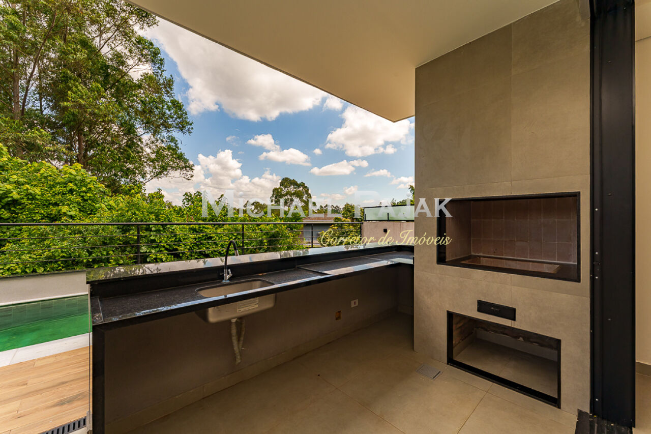 A cozinha integrada ao espaço gourmet combina a funcionalidade com a atmosfera descontraída, criando um ambiente versátil para preparar e desfrutar de refeições.